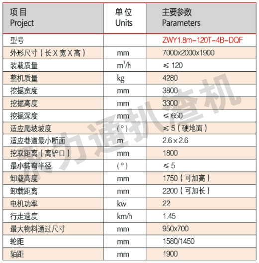 120型煤礦用防爆扒渣機(jī)技術(shù)參數(shù)
